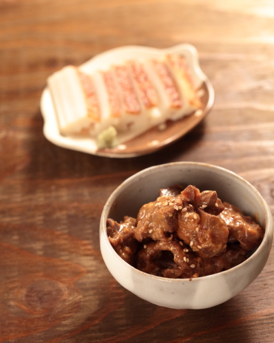 砂肝のピリ辛みそ煮とはもかまぼこ