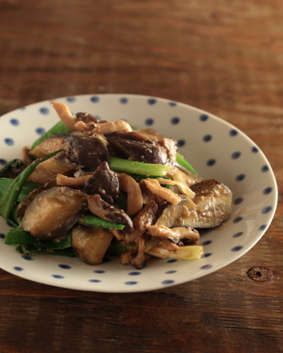 なすと平茸のねぎみそ炒め