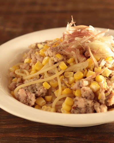 とうもろこしと鶏ひき肉のスパゲッティー